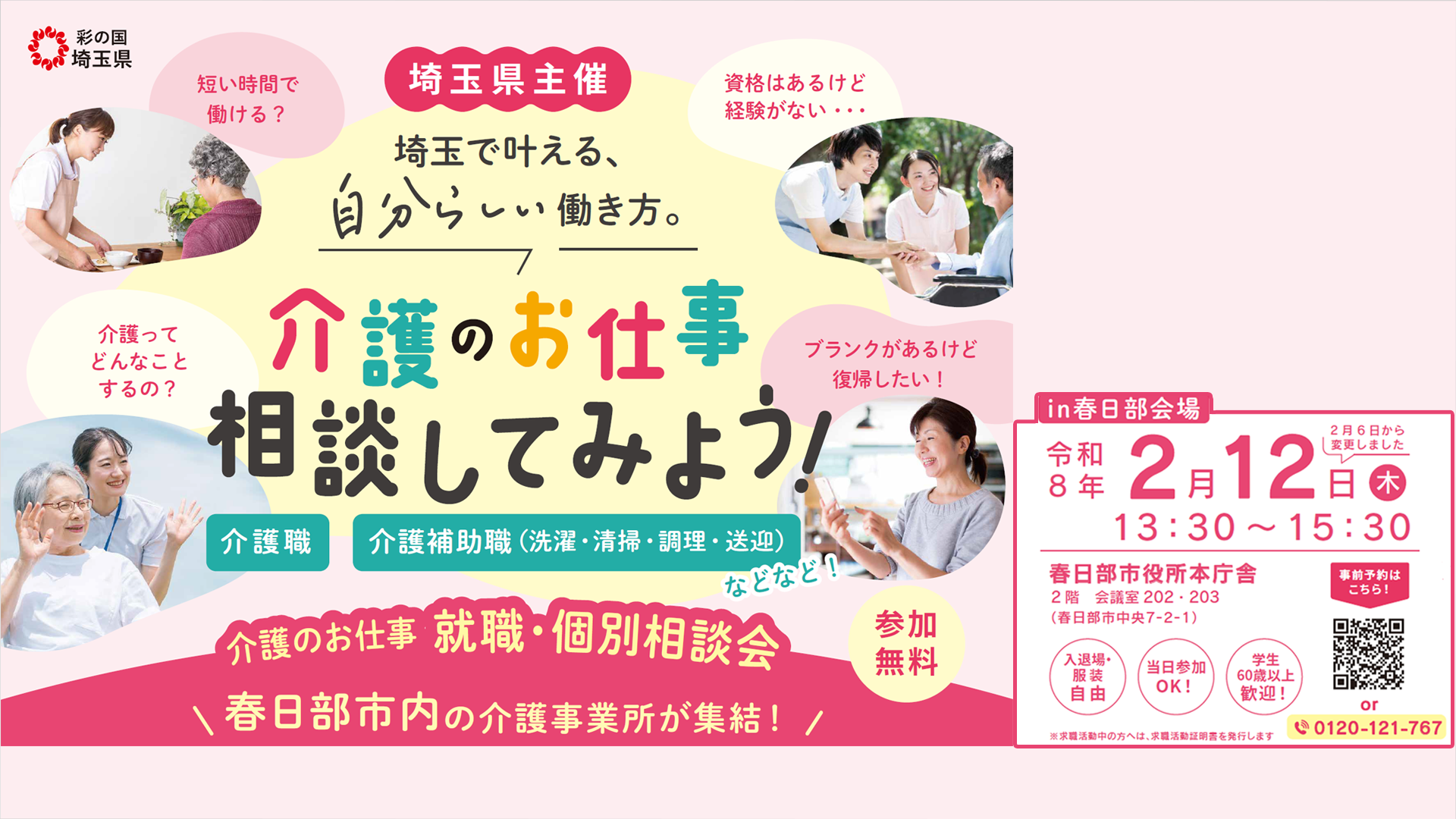 【2/12開催】「介護のお仕事就職・個別相談会 in 春日部」に参加いたします。